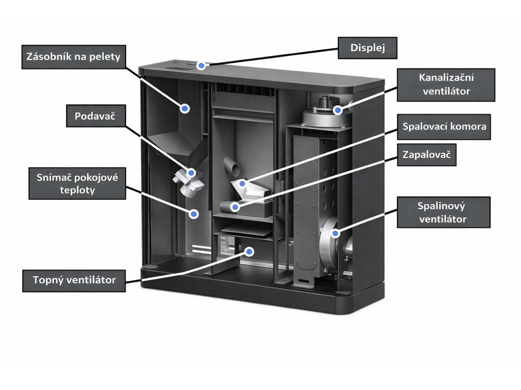 Kamna jsou navíc vybavena zadním vzduchovým hrdlem, které umožňuje odvod teplého vzduchu do další místnosti.
