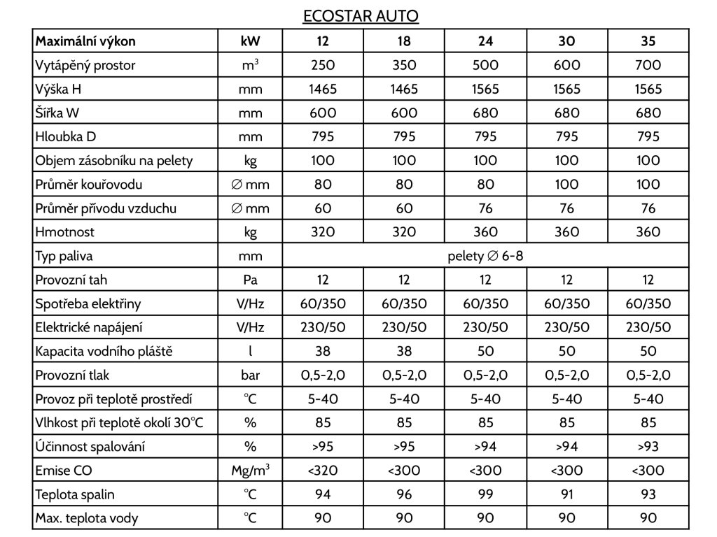 ECOSTAR AUTO kombinuje robustní konstrukci, vysokou účinnost a plně automatický provoz, což z něj činí ideální volbu pro komfortní a úsporné vytápění.