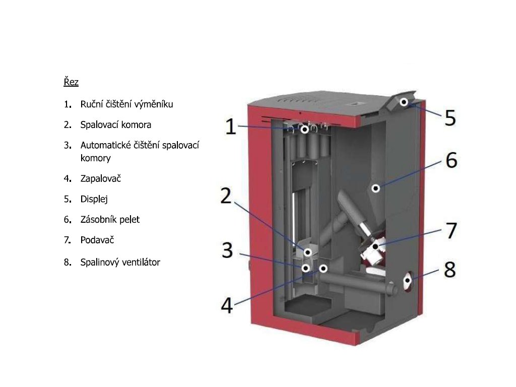 - Orientační spotřeba pelet - 0,7–5,6 kg/h
